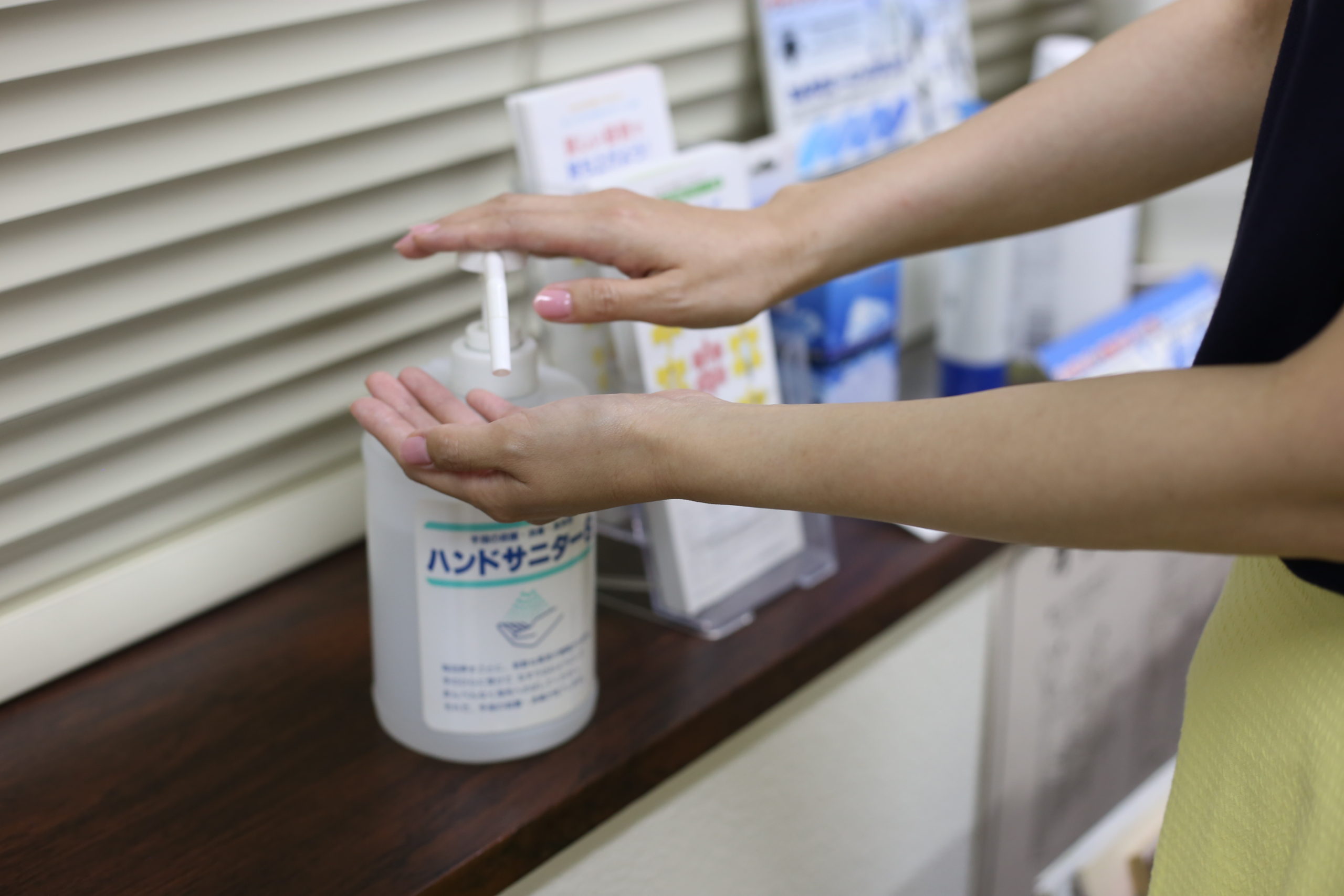 入り口に設置し皆さまにご協力頂いております。各器機を安心してご利用頂けるように小まめな清掃・消毒も随時行っております。