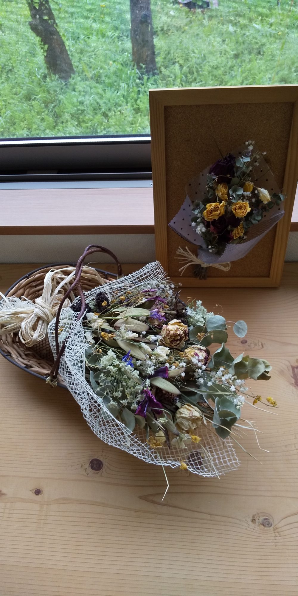 義理の母からドライフラワーのアレンジメントをいただきました。